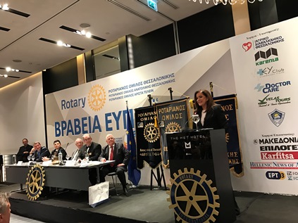 Η κοινωνική προσφορά των Ροταριανών της Θεσσαλονίκης έχει ξεπεράσει τα όρια της περιοχής. Έχετε πρωταγωνιστήσει από το 2009 στη δημιουργία του βαλκανικού δικτύου Ρόταρυ, με μεγάλες επιτυχίες σε ολόκληρη τη Νοτιοανατολική Ευρώπη. Θα ήθελα να σας εκφράσω τα θερμά μου συγχαρητήρια για την επιτυχημένη παρουσία σας.